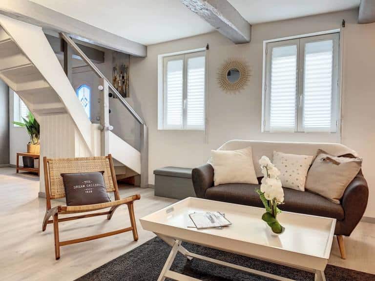 Cette maison de ville avait été totalement rénovée, elle ne présentait donc pas de souci majeur. Cependant, elle se situait au bord d’une voie passante et était assez sombre. Je devais créer un vrai coup de cœur pour faire oublier ces points faibles et booster la vente grâce au home staging.