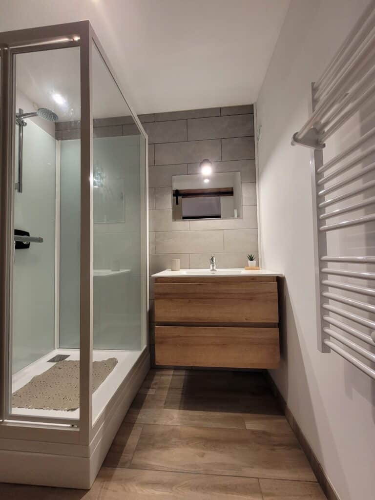 Mes clients ont acheté un vaste corps de ferme pour y créer des logements loués à l’année et des gîtes. Ensemble, nous avions déjà travaillé sur un premier gîte et ce second projet était la suite logique. Je devais les accompagner à nouveau des plans 2 et 3D aux choix des couleurs, sans oublier mobilier et accessoires.