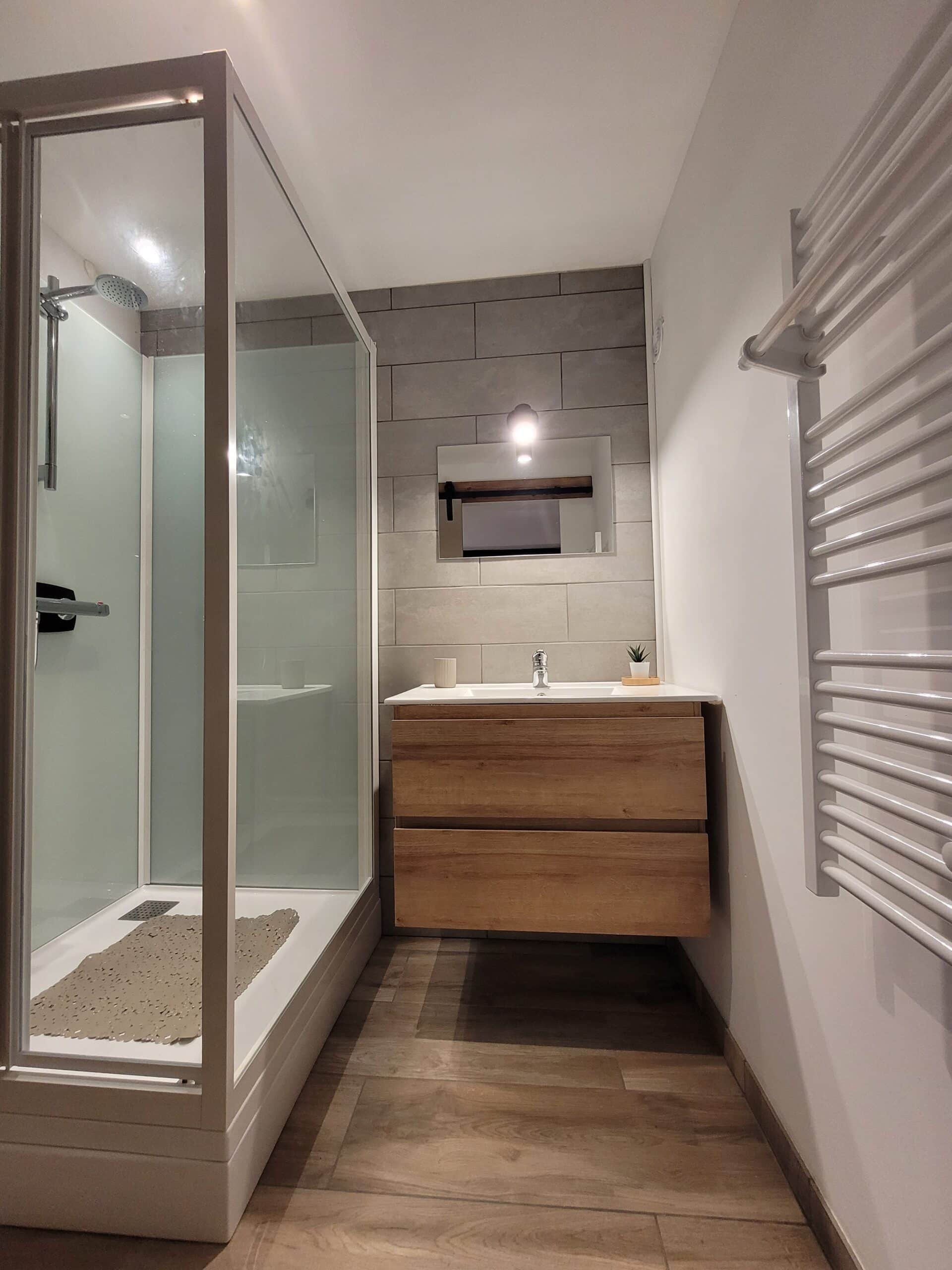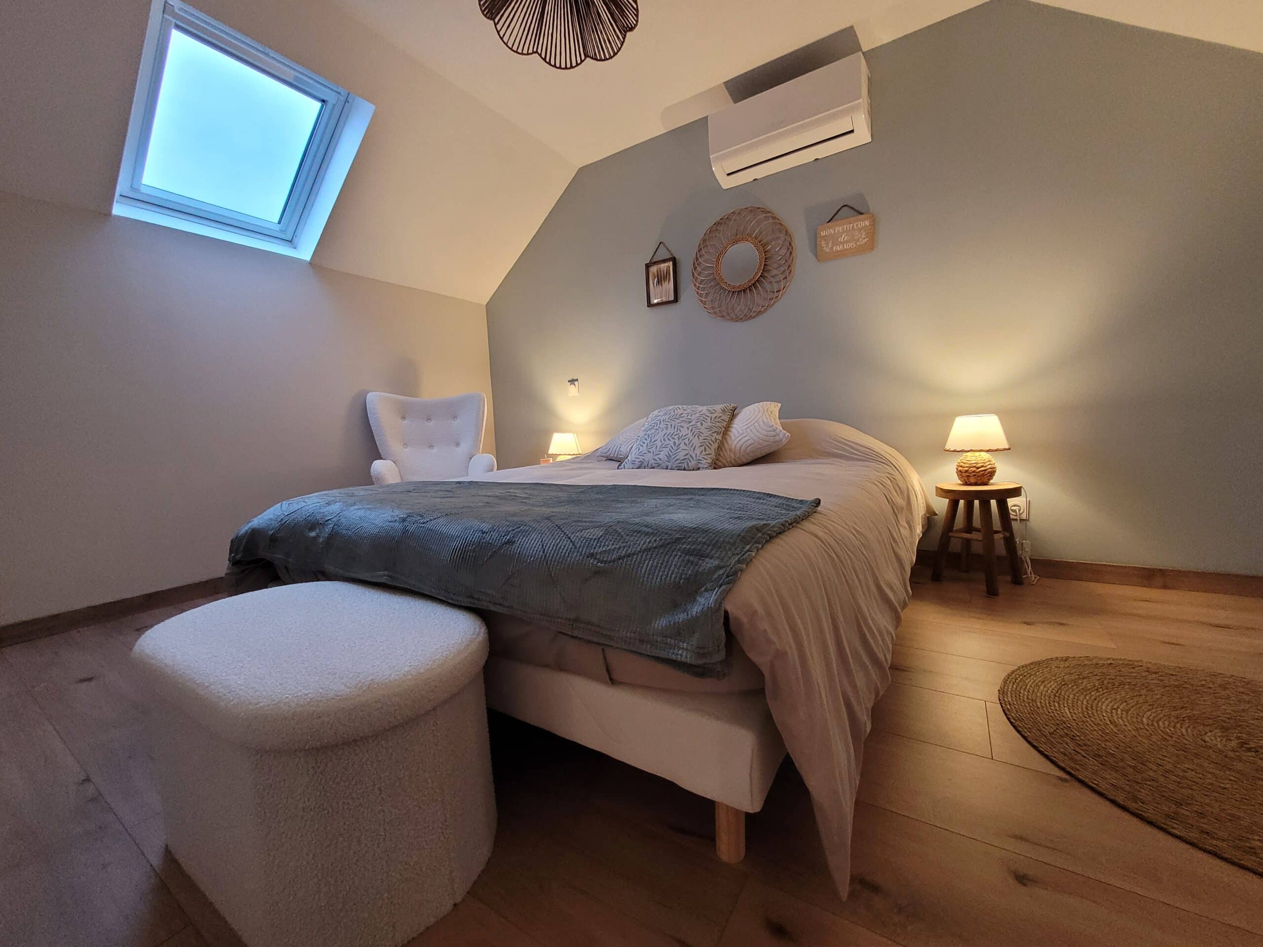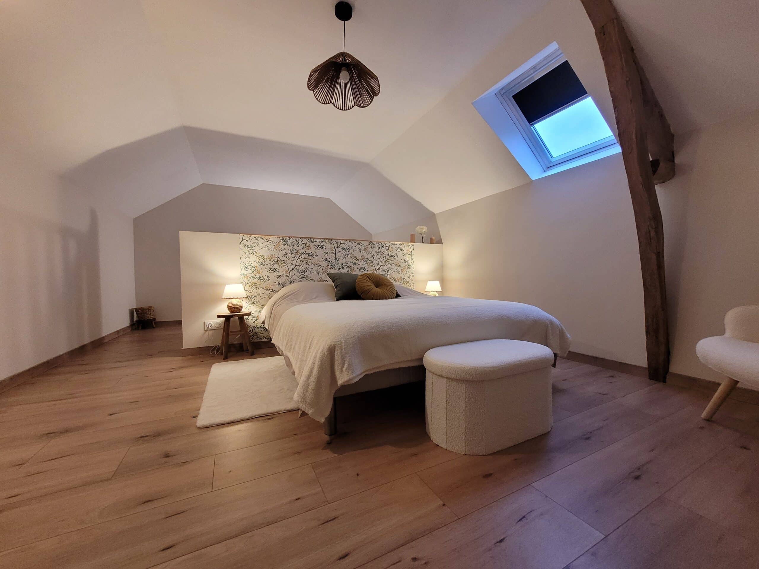 Mes clients ont acheté un vaste corps de ferme pour y créer des logements loués à l’année et des gîtes. Ensemble, nous avions déjà travaillé sur un premier gîte et ce second projet était la suite logique. Je devais les accompagner à nouveau des plans 2 et 3D aux choix des couleurs, sans oublier mobilier et accessoires.